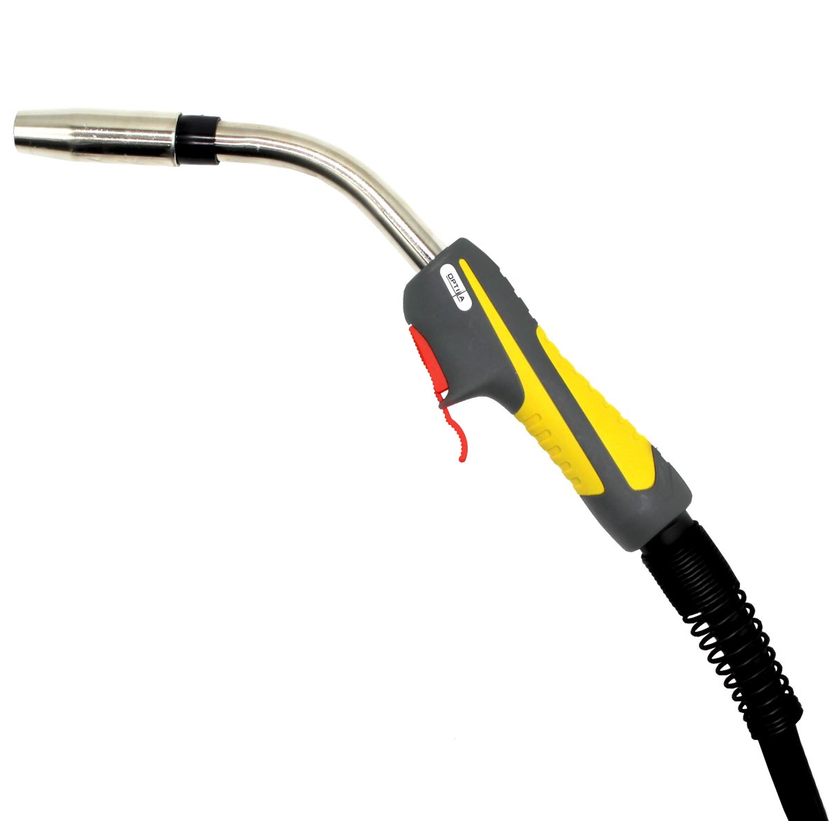 | Система быстрой сме-ны гусака для экономии времени и сил. | Шарнирное соедине-ние для удобства эксплу-атации горелки. | Усиленная пружина для защиты кабеля от перегибов. | Удлиненная кнопка для более комфортной работы с горелкой. | Латунная гайка евро разъема для надежной фиксации горелки с евро-адаптером. |