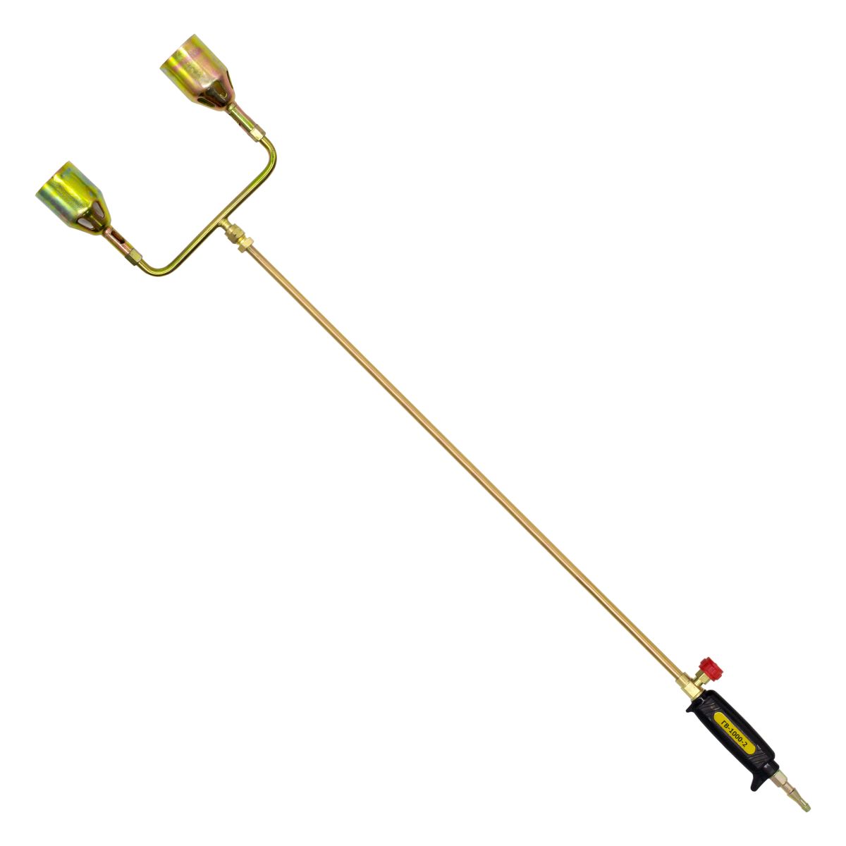 Горелка газовоздушная ГВ-1000-2 (Optima) с 2-мя наконечниками предназначена для нагрева изделий из черных и цветных металлов, неметаллических материалов, а также для оплавления поверхности битумного рулонного материала при производстве гидроизоляции. Применяется для нагрева при сгибе пластмассовых труб, сушке железобетонных панелей, литейных форм, кирпичной кладки и других работ. В качестве горючего газа применяется пропан-бутановая смесь.