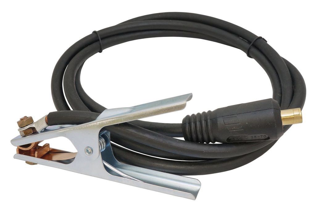 Кабель заземления 250А, 4м (25мм / ОКС 35-50) в сборе, для сварочных аппаратов работающих на токе до 250 А. Используется для соединения сварочного аппарата с землей (заземление) во время проведения сварочных работ. Кабель подключается к сварочному аппарату с помощью разъема, а к металлу — с помощью зажима. Имеет надежную фиксацию и высокую токопроводность. Для комплектации используются кабели высочайшего качества.