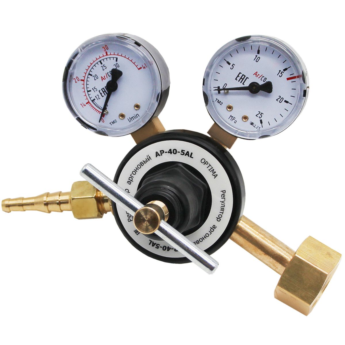 Регулятор расхода газа аргоновый АР-40-5AL (Optima) предназначены для понижения давления газа и автоматического поддержания постоянным заданного расхода при питании постов и установок электргосварки в среде защитных газов.